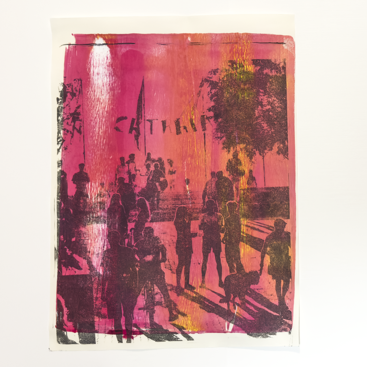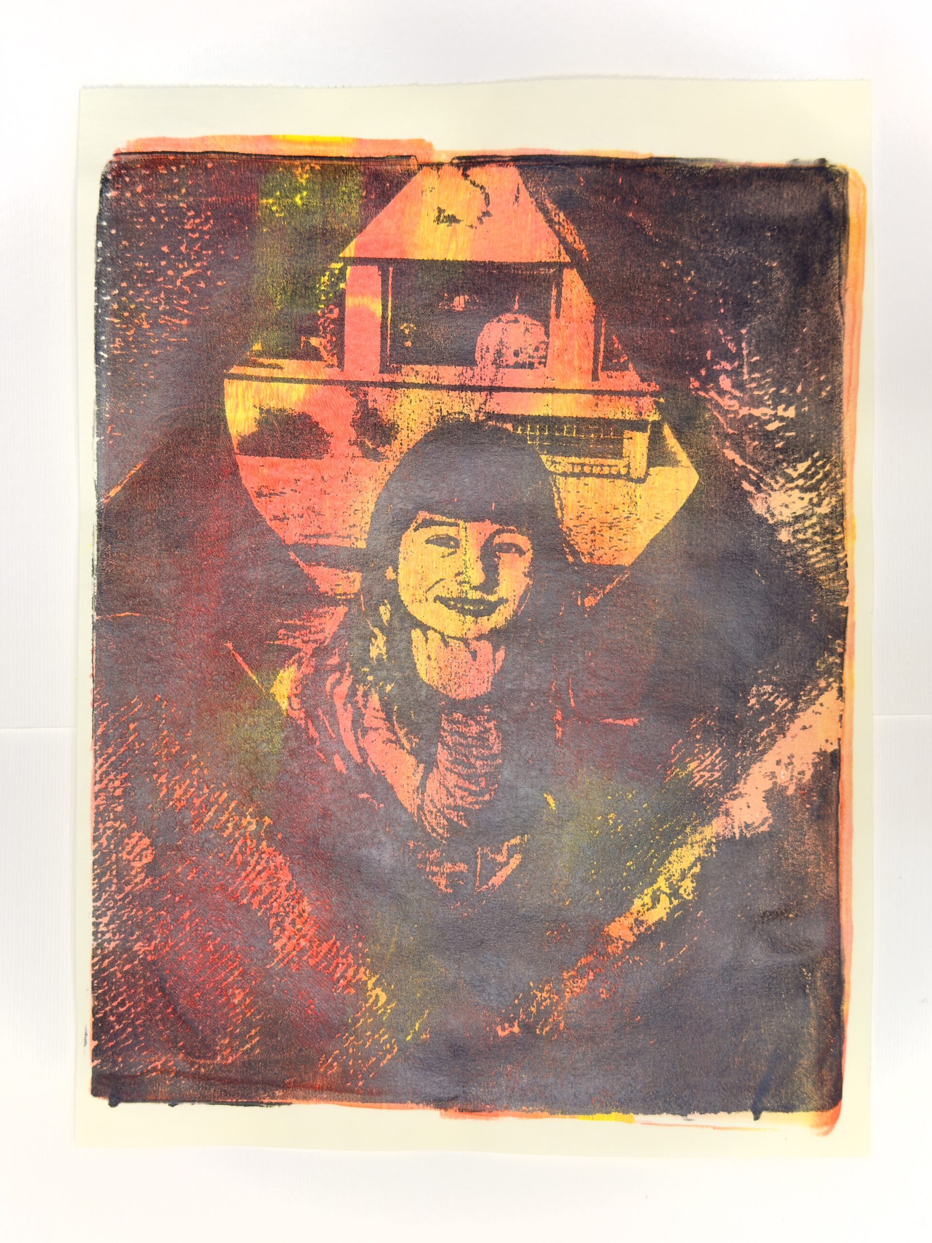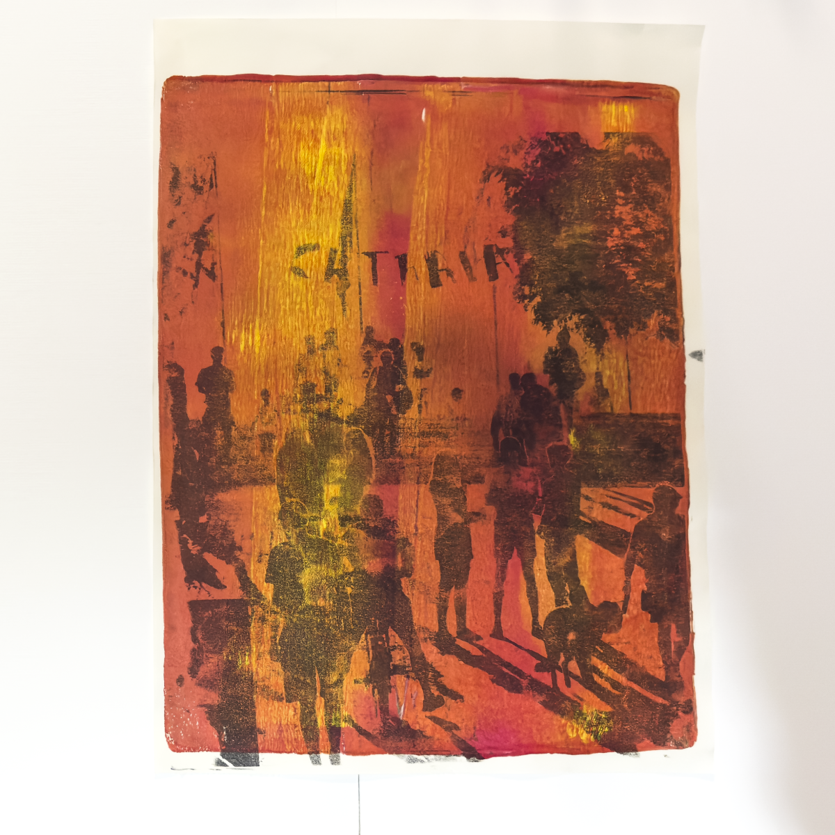 Várias pinturas e gravuras usando a técnica de Monotype, ou Gelli Print.